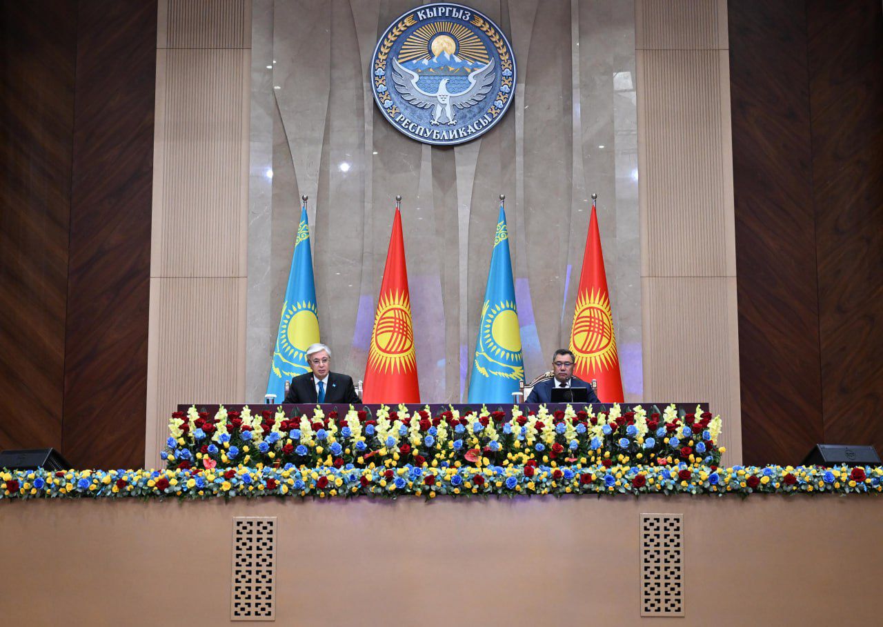 – Бауырлас мемлекеттер ретінде кез келген мәселені өзара сенім мен одақтастық рухында шешеміз деген пайымға келдік. Біздің өзара тиімді ықпалдастықты одан әрі кеңейтуге ниетіміз бар. Оған саяси күш-жігеріміз де жетеді деп кәміл сенемін. Бүгінгі келіссөздердің нәтижесі туралы жаңа ғана құрметті Президент айтып өтті. Біз, ең алдымен, сауда-экономикалық байланыстарды нығайтуға айрықша назар аударып отырмыз. Қазақстан – Қырғызстанның сауда және инвестиция саласындағы негізгі серіктесінің бірі. Былтыр өзара тауар айналымы 1,7 миллиард долларға жетті. Биылғы жарты жылдың көрсеткіштері де жаман емес. Алдағы 5 жылда сауда-саттық көлемін 3 миллиард долларға дейін арттыруға мүдделіміз. Сондықтан бүгін арнайы Жол картасына қол қойылды. Жалпы, екіжақты сауда айналымын ұлғайтуға мол мүмкіндік бар. Келесі жылы қазақ-қырғыз шекарасында салынып жатқан Индустриялық сауда-логистика кешені іске қосылмақ, – деді Қасым-Жомарт Тоқаев.