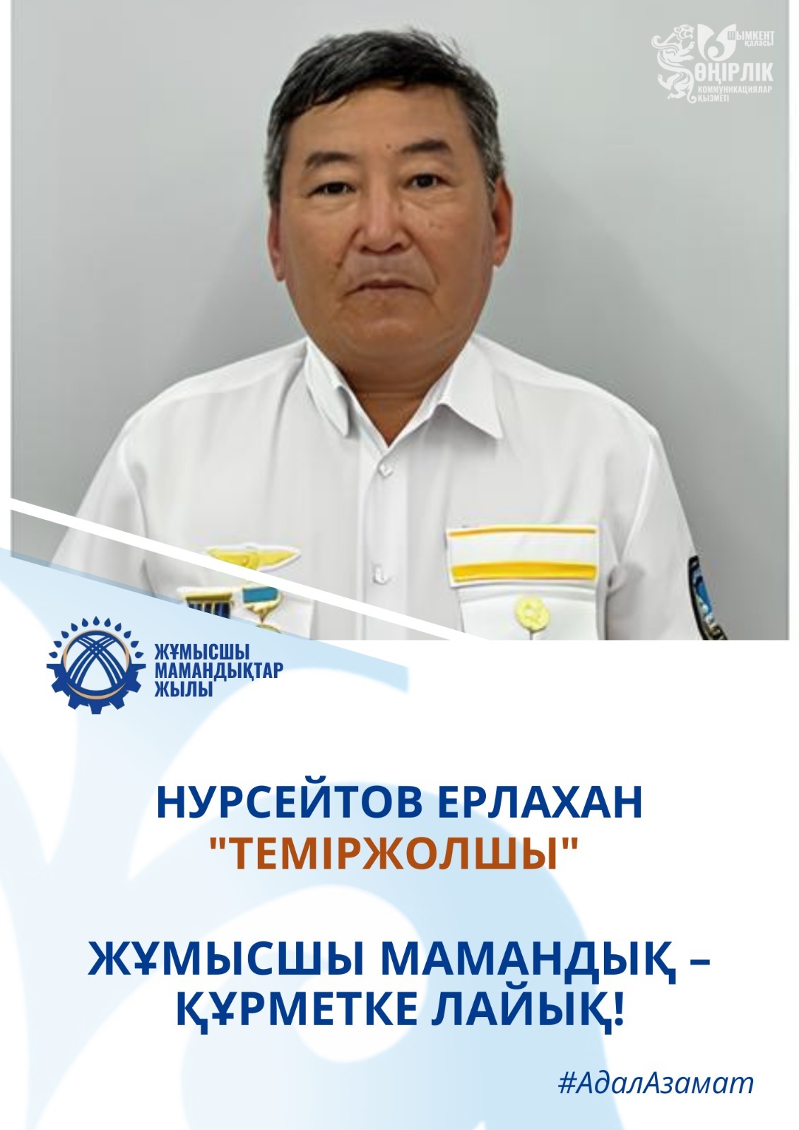 Темір жол саласында ұзақ жылдар бойы абыройлы еңбек етіп келе жатқан Нурсейтов Ерлахан өз ісіне адал, тәжірибесі мол мамандардың бірі. Ол 1973 жылдың 12 желтоқсанында дүниеге келген. Бүгінде темір жол саласында еңбек етіп келе жатқанына 32 жыл толып отыр.Еңбек жолын Шеңгелді станциясында пойыздар қабылдаушысы қызметінен бастаған ол жылдар бойы жинаған тәжірибесі мен кәсіби біліктілігінің арқасында түрлі лауазымдарда табысты еңбек етті. Сарыағаш станциясында пойыздар қабылдаушысы, аға жүк және багаж қабылдап тапсырушысы сынды жауапты қызметтерді абыроймен атқарды.