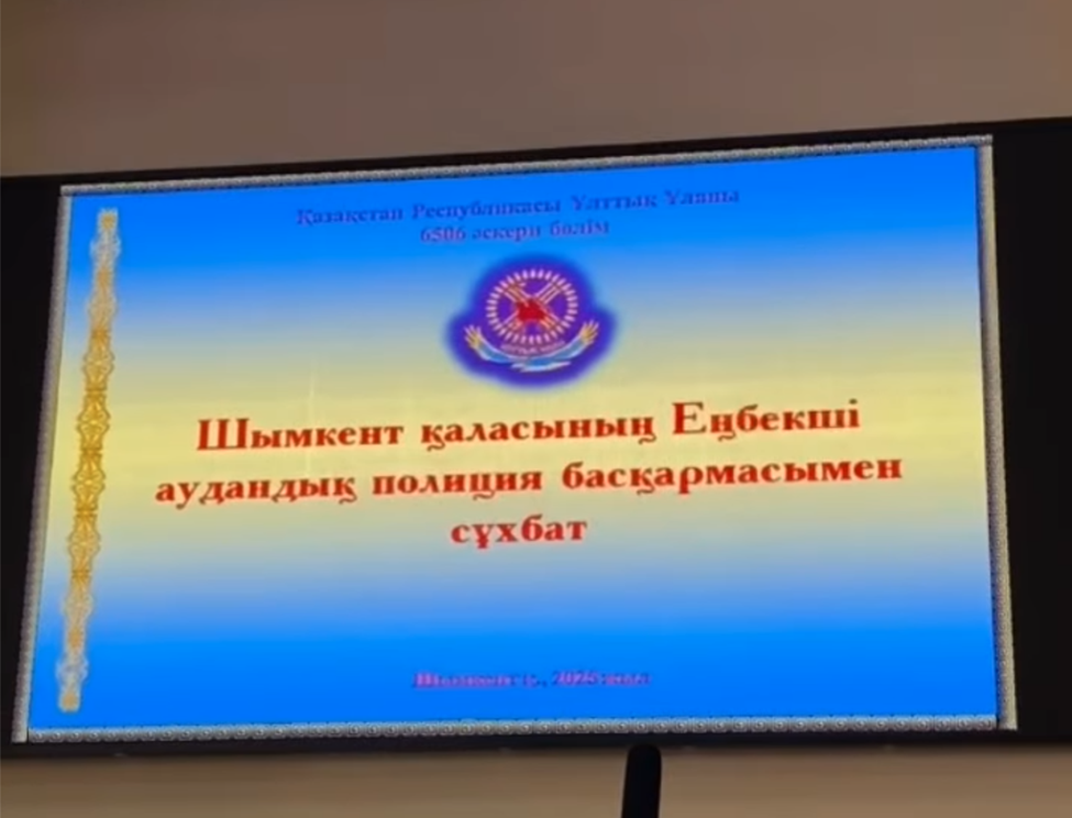 2025 жылдың 19 тамызында Шымкент қаласының Еңбекші аудандық полиция басқармасы 6506 әскери бөлімінде ерекше профилактикалық іс-шара ұйымдастырды. Шараның басты мақсаты – сарбаздар арасында тұрмыстық зорлық-зомбылық тақырыбын ашық талқылап, оның алдын алу, сондай-ақ құқықтық мәдениетті қалыптастыруға ықпал ету болды.