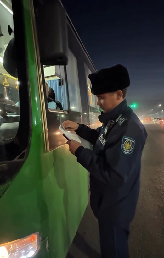 Сонымен қатар, тексерудің маңызды бөлігі — қажетті құжаттардың бар-жоғына назар аудару болды. Жүргізушілердің жеке куәліктері, көліктің тіркеу құжаттары, сақтандыру полистері, медициналық тексеруден өткенін растайтын құжаттар тексерілді. Бұл шара жүргізушілердің заң талаптарына сәйкестігін және жолда қозғалыс қауіпсіздігін қамтамасыз етуге бағытталған.