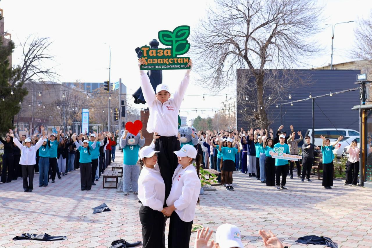 «Таза Қазақстан» бағдарламасы аясында Шымкент қаласында кезекті тазалық акциясы ұйымдастырылды. Жастар ресурстық орталығының алдында 200-ге жуық жас жиналып, тазалық пен экологиялық жауапкершілікті насихаттайтын флешмоб өткізді. Шараға жоғары оқу орындарының студенттері мен ерікті жастар қатысты.