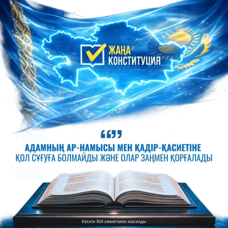 Жаңа Конституция жобасында көрсетілген бұл қағида Қазақстан Республикасы құқықтық және демократиялық мемлекет ретінде дамуының маңызды негіздерінің бірі болып табылады. Адамның ар-намысы мен қадір-қасиетінің заңмен қорғалуы – қоғамдағы тұрақтылық пен әділеттіліктің кепілі.