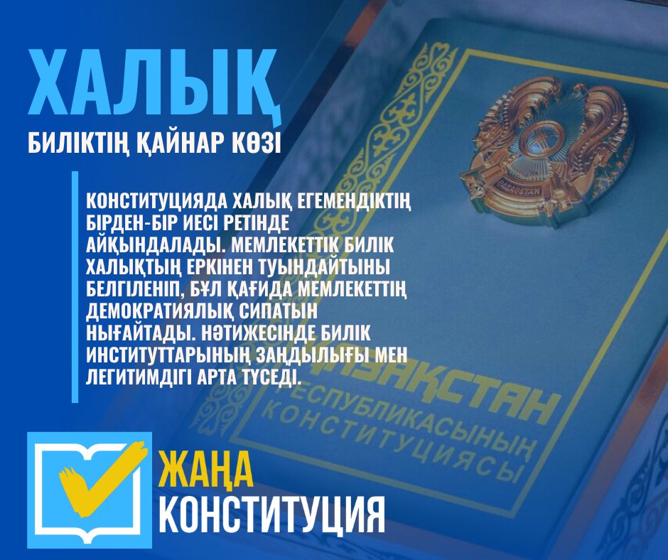 ҚР ЖАҢА КОНСТИТУЦИЯСЫ: ҚАЗАҚСТАН ХАЛҚЫ — МЕМЛЕКЕТТІК БИЛІКТІҢ БІРДЕН-БІР БАСТАУЫ ЖӘНЕ ЕГЕМЕНДІК ИЕСІ