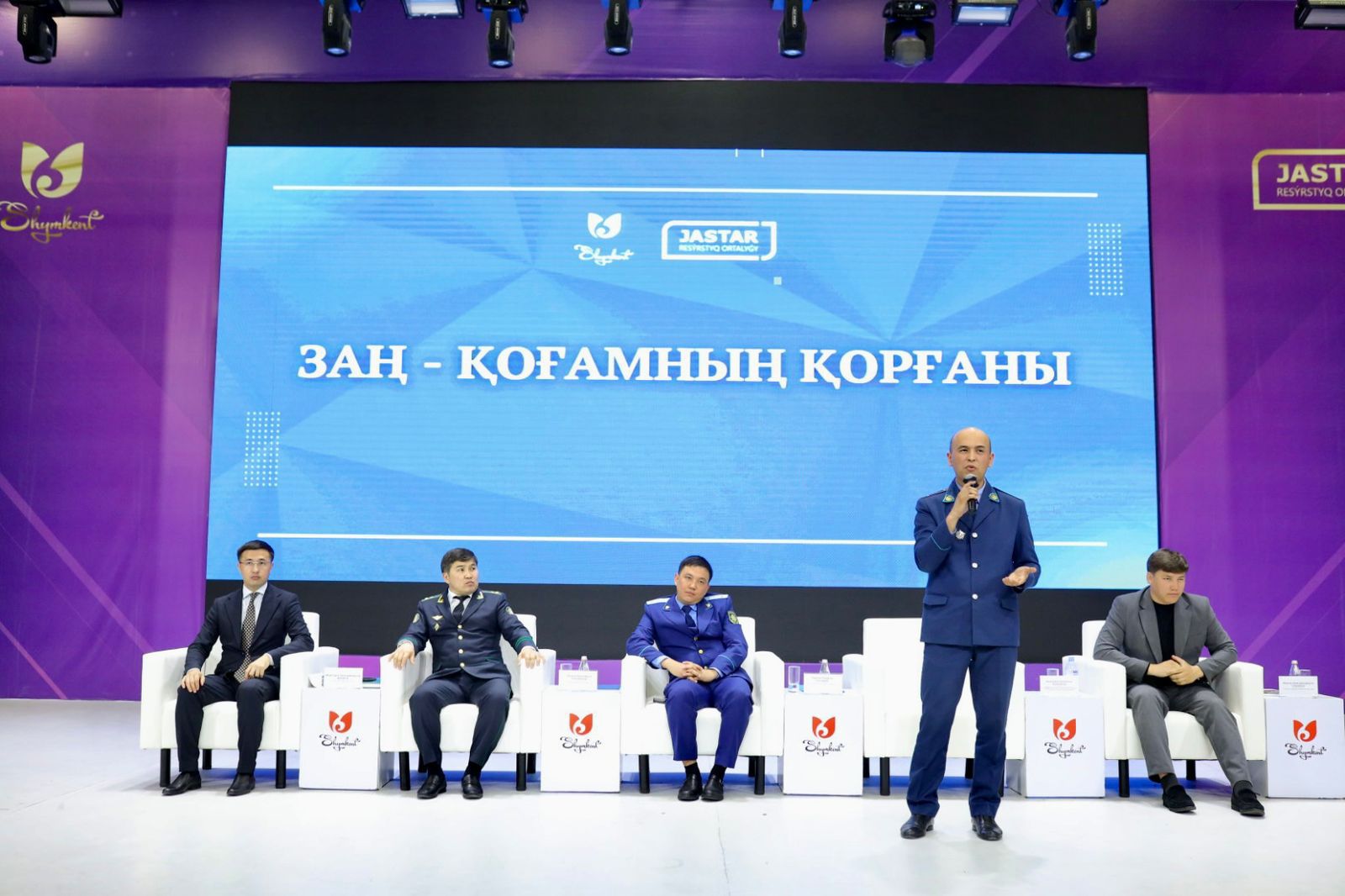 Іс-шараның модераторы ретінде Шымкент қаласы «Жастар ресурстық орталығы» КММ-нің басшысы Жансерік Бауыржанұлы Жұман сөз сөйлеп, заң мен тәртіптің қоғам тұрақтылығындағы маңызын атап өтті.